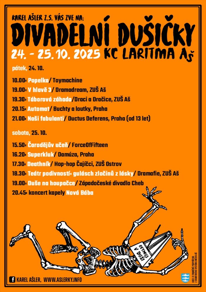 20.45: Celý je to podvod/ Six-pack, ZUŠ R. Schumanna Aš (Co probleskne hlavou muži padajícímu z výšky? Bude to jeho vztah? Nebo pět vztahů? Co udělají všechny stránky jeho osobnosti, než se pořádně rozplácnou?) od 12 let